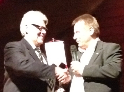 Lars Lundberg blev premierad med ett standar från BK Snar ordförande Jan Karlsson.