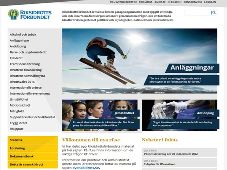 Den 16 oktober lanserar RF även en ny servicesajt för idrotten: svenskidrott.se. Målet med sajten är att det ska vara enkelt att lösa frågetecknen i idrottsvardagen. Därför samlar vi allt som handlar om LOK-stöd, Idrottslyftet, IdrottOnline och annat som hör vardagen till på ett ställe. Här finns även information om RF:s kompetensområden som motions- och elitidrott, idrott för barn-, ungdomar och vuxna, idrottsjuridik, administration, ekonomi och kommunikation. Sajten stöds av ett nyhetsbrev ”Nyheter till svensk idrott” som skickas veckovis till dem som skriver upp sig som prenumeranter.